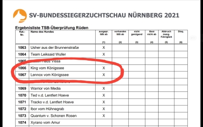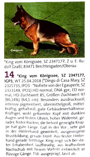 Unser King vom Königssee wurde heute mit einem sensationellen V 14 bewertet, Lennox vom Königssee mit V 51.